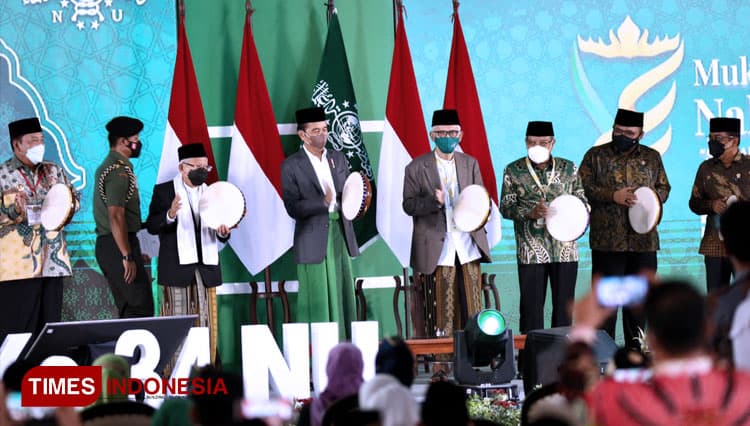 TIMES Banjarbaru/Presiden Jokowi (Joko Widodo) membuka secara resmi Muktamar Ke-34 Nahdlatul Ulama di Pondok Pesantren Darussa’adah, Gunung Sugih, Lampung Tengah, Rabu (22/12/2021). (FOTO: Moh Ramli/TIMES Indonesia)